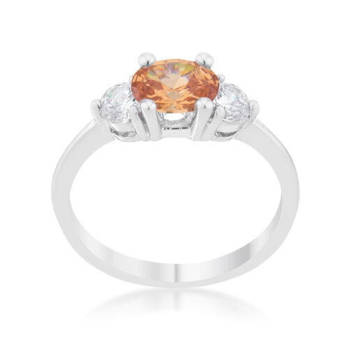 Miranna 1.2ct Champagne CZ Rhodium Classic Oval Ring