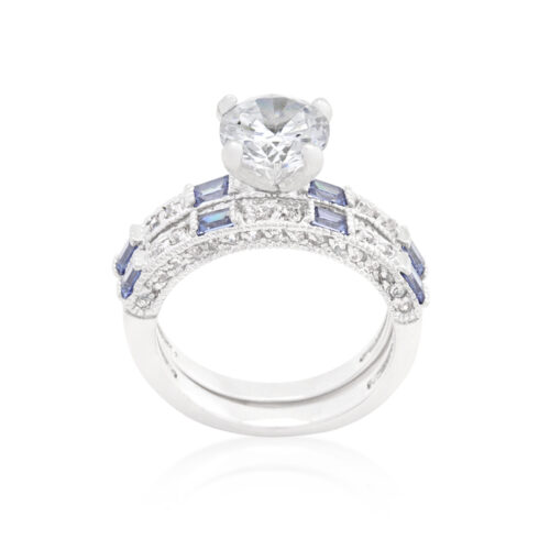 Clear and Tanzanite Cubic Zirconia Ring Set