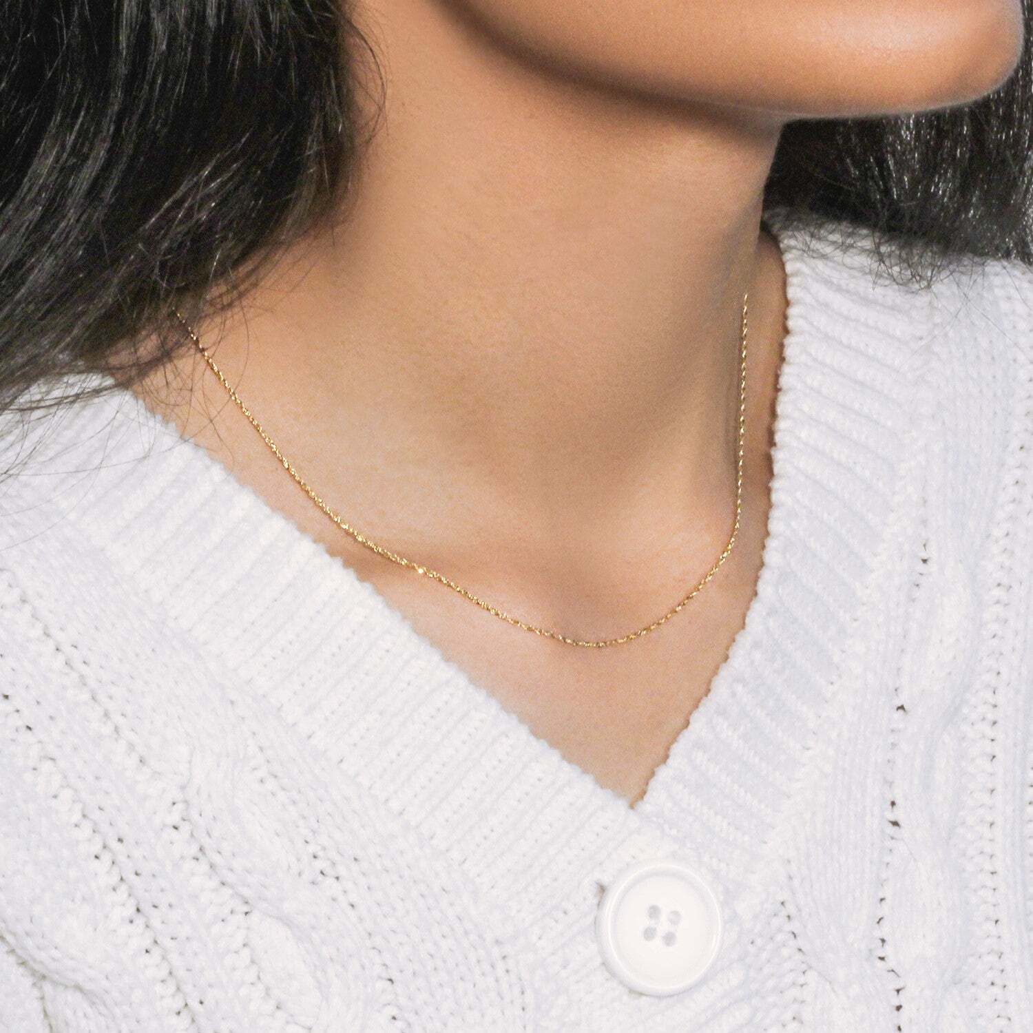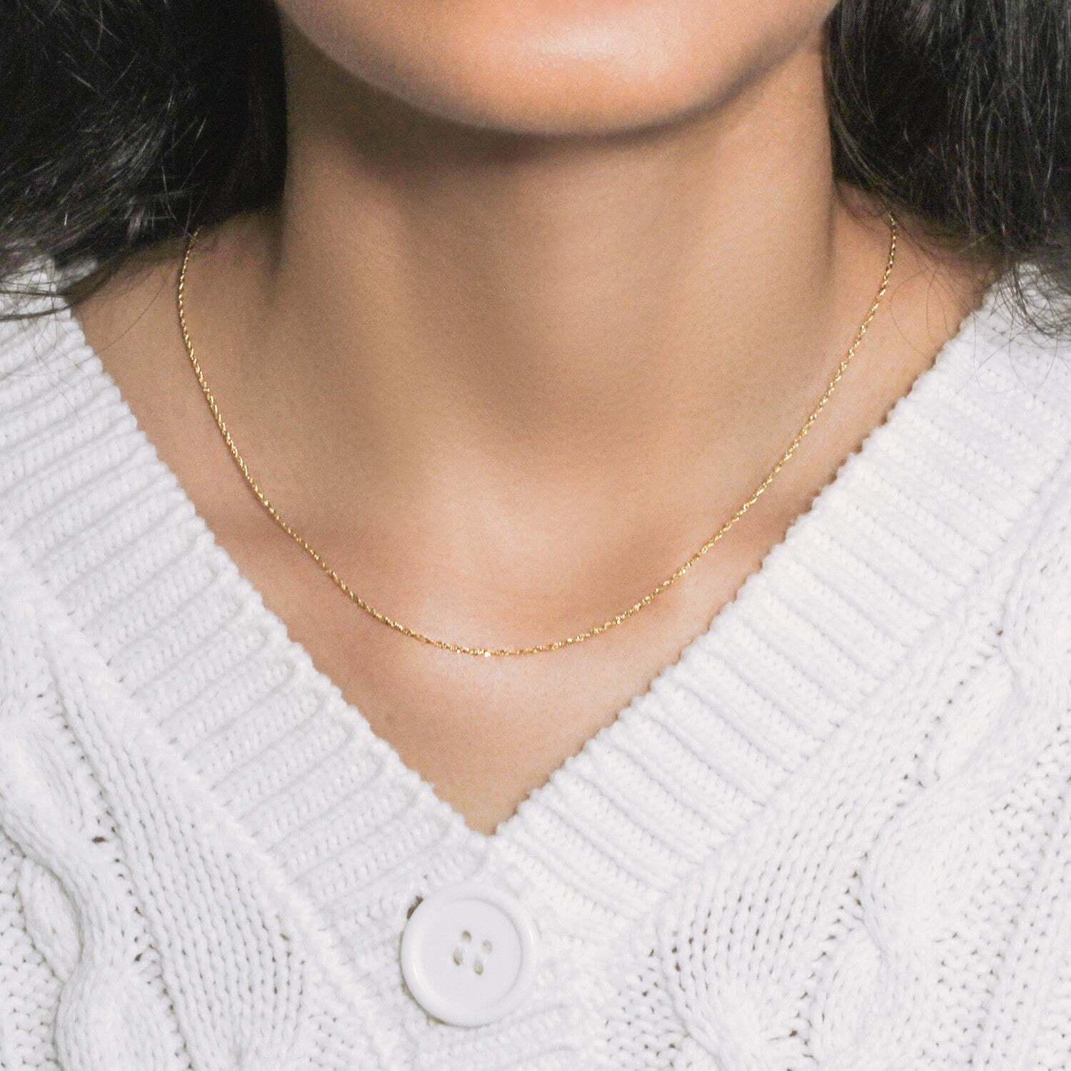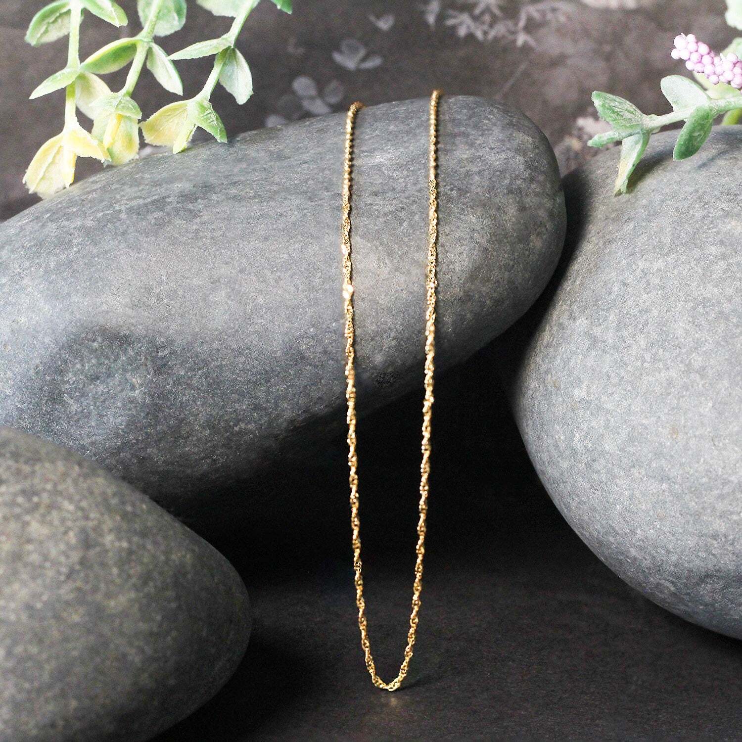 This Singapore chain comes in 10k yellow gold and has a width of 1.10 millimeters.