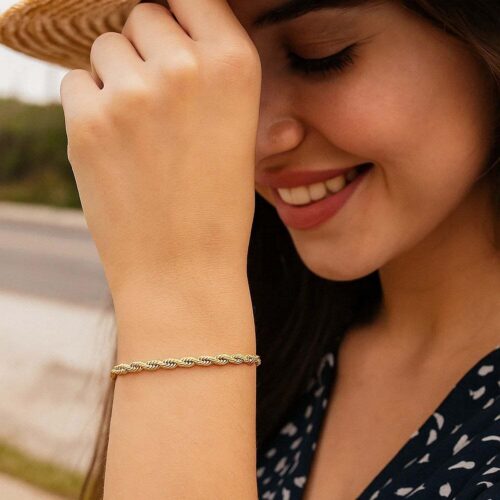 This solid diamond cut rope bracelet comes in 10k yellow gold and has a width of 3.0 millimeters.
