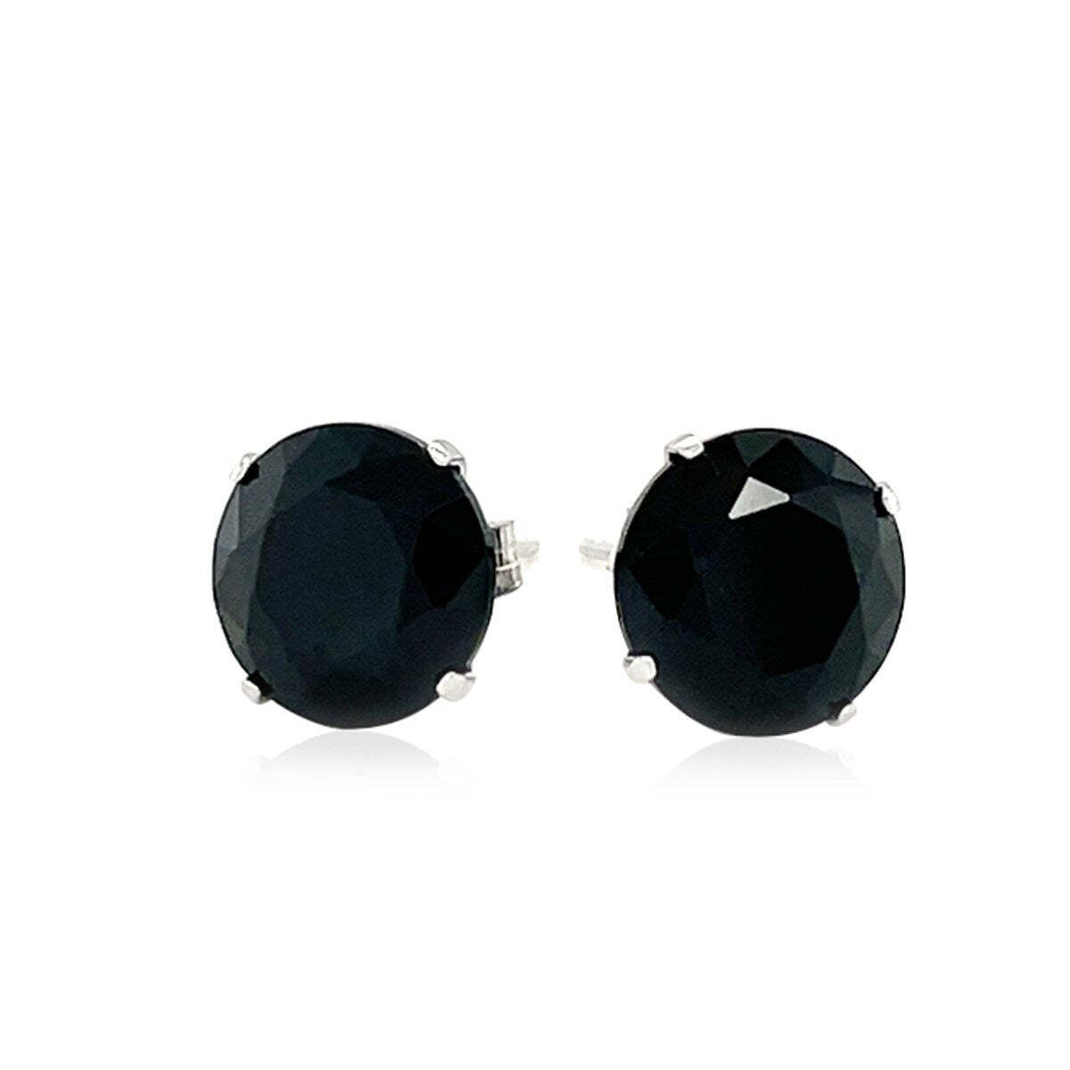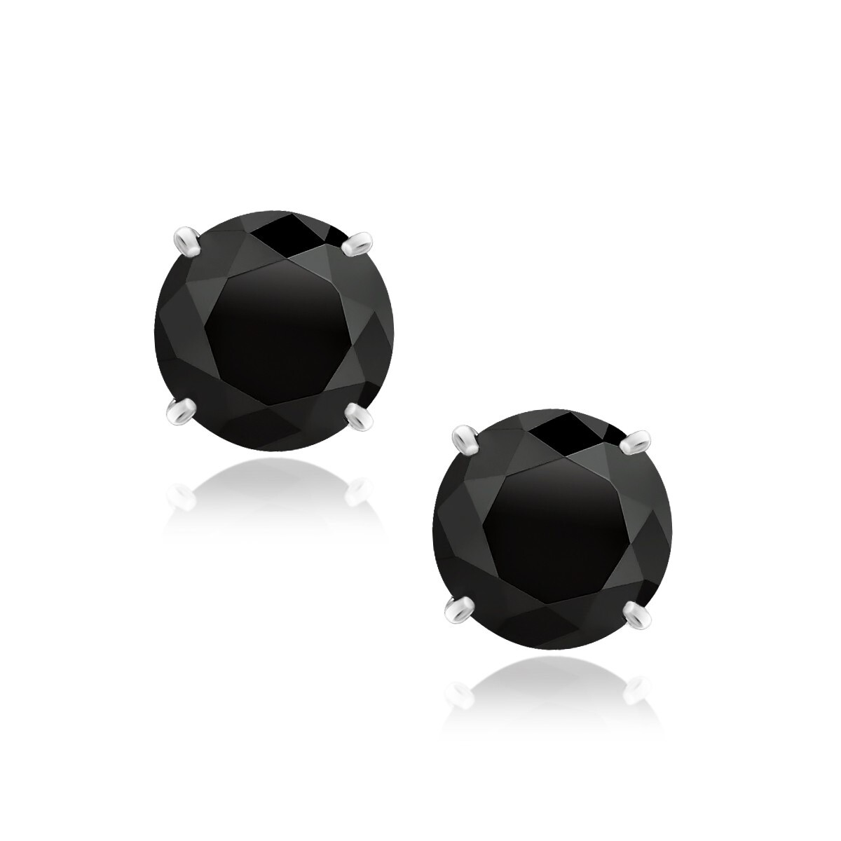 These dramatic 8.0 millimeters round black CZ sparklers make for a beautiful pair of stud earrings. Expertly crafted in 14k white gold, they feature prong settings and push back closures.