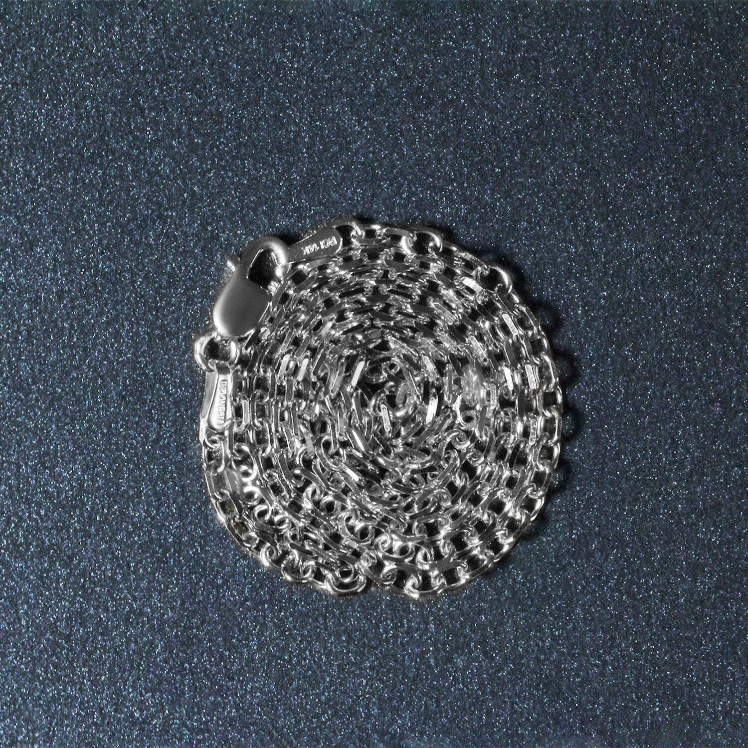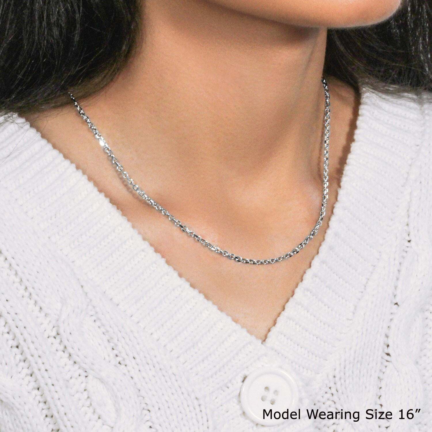 This diamond cut cable link chain comes in 14k white gold and has a width of 2.20 millimeters.