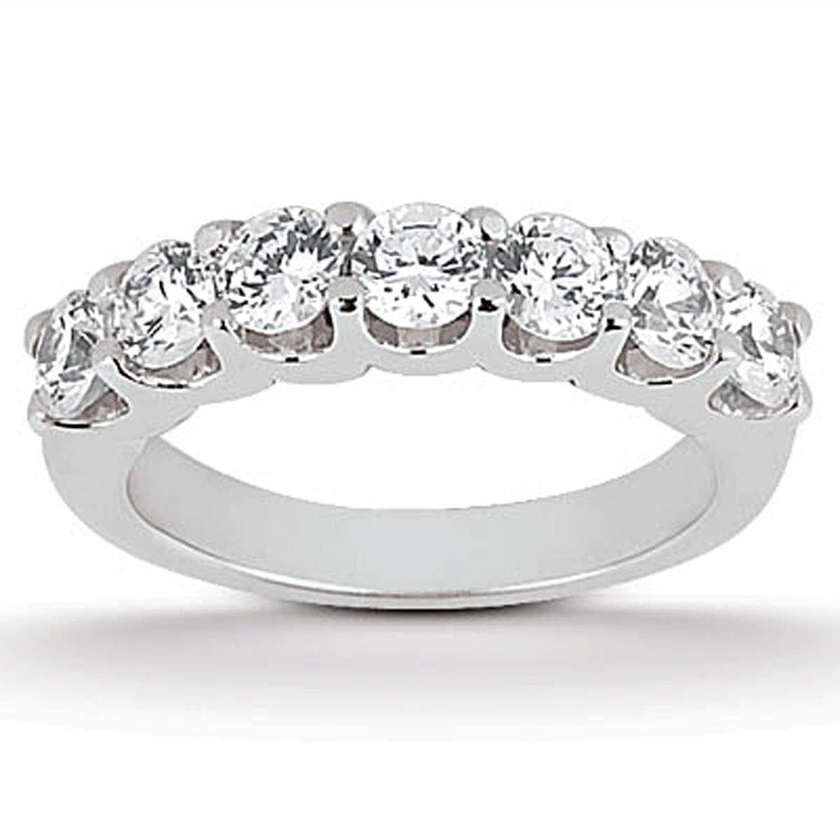 Seven brilliant diamonds delight the eye and enliven the feminine design of this dynamic wedding ring. Expertly crafted in 14k white gold, the ring features secure shared prong settings that culminate in a graceful scallop underneath.