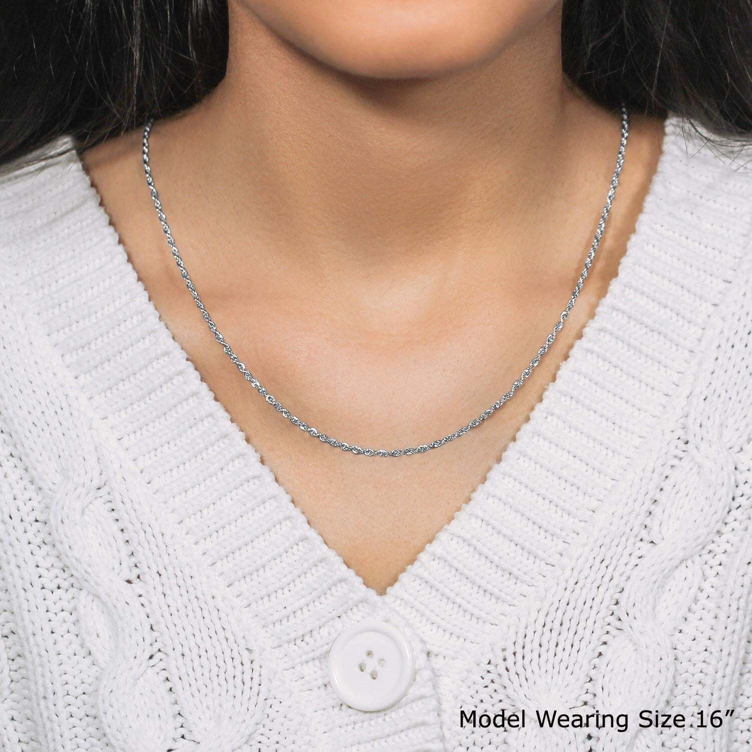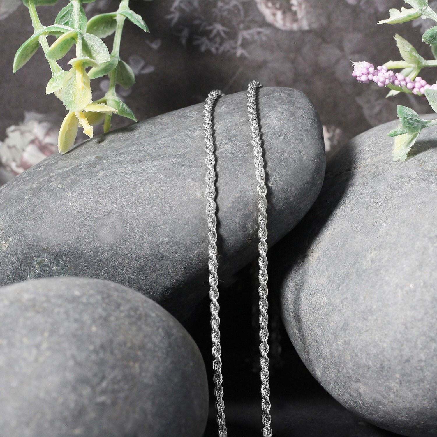 This light rope chain comes in 14k white gold and has a width of 2.00 millimeters.