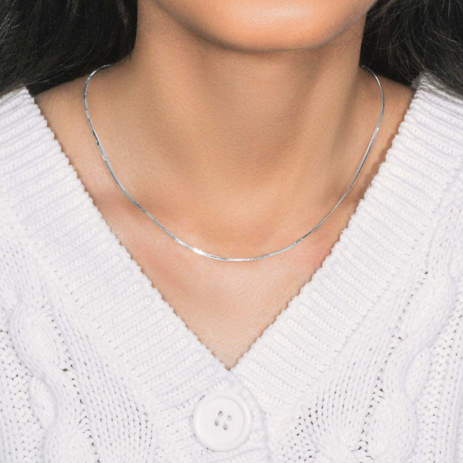 This Milano chain comes in 14k white gold and has a width of 1.10 millimeters.