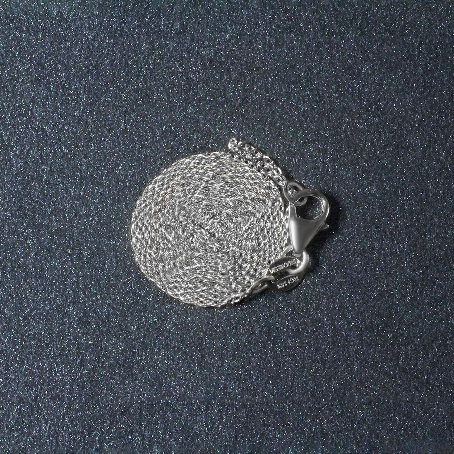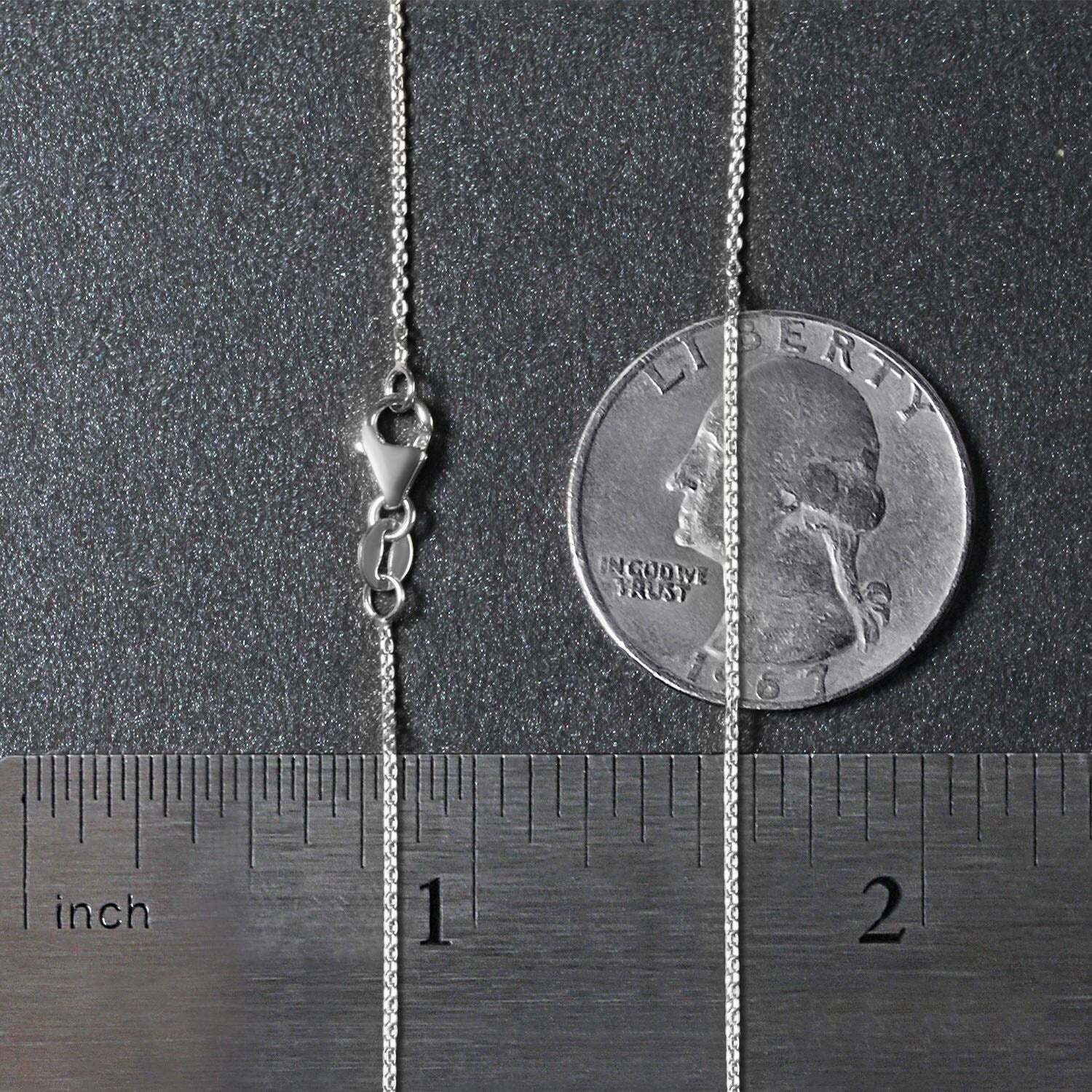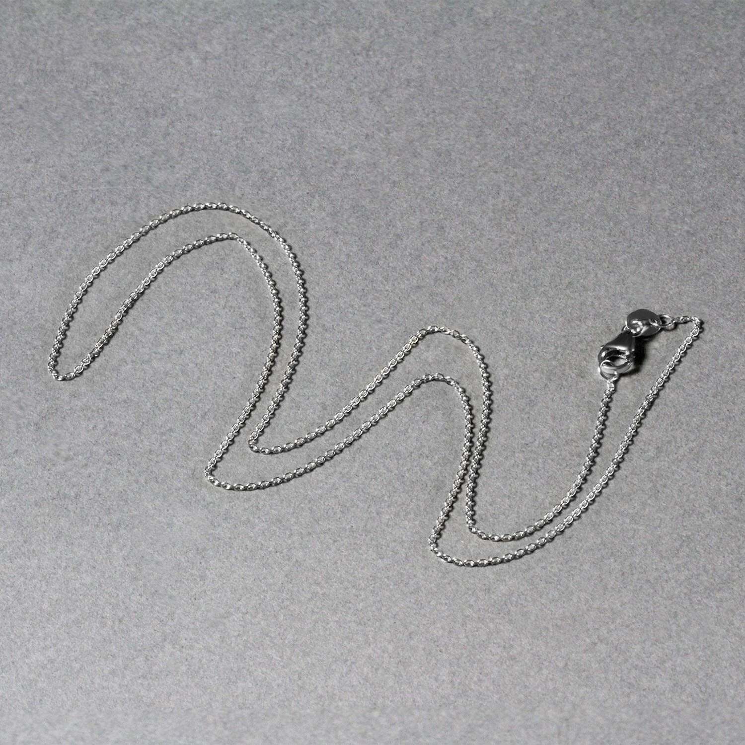 This oval cable link chain comes in 14k white gold and has a width of 0.97 millimeters.