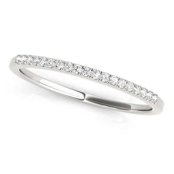 Beautifully elegant, this diamond wedding ring features scallop set shank stones. Crafted in fine 14k white gold.
