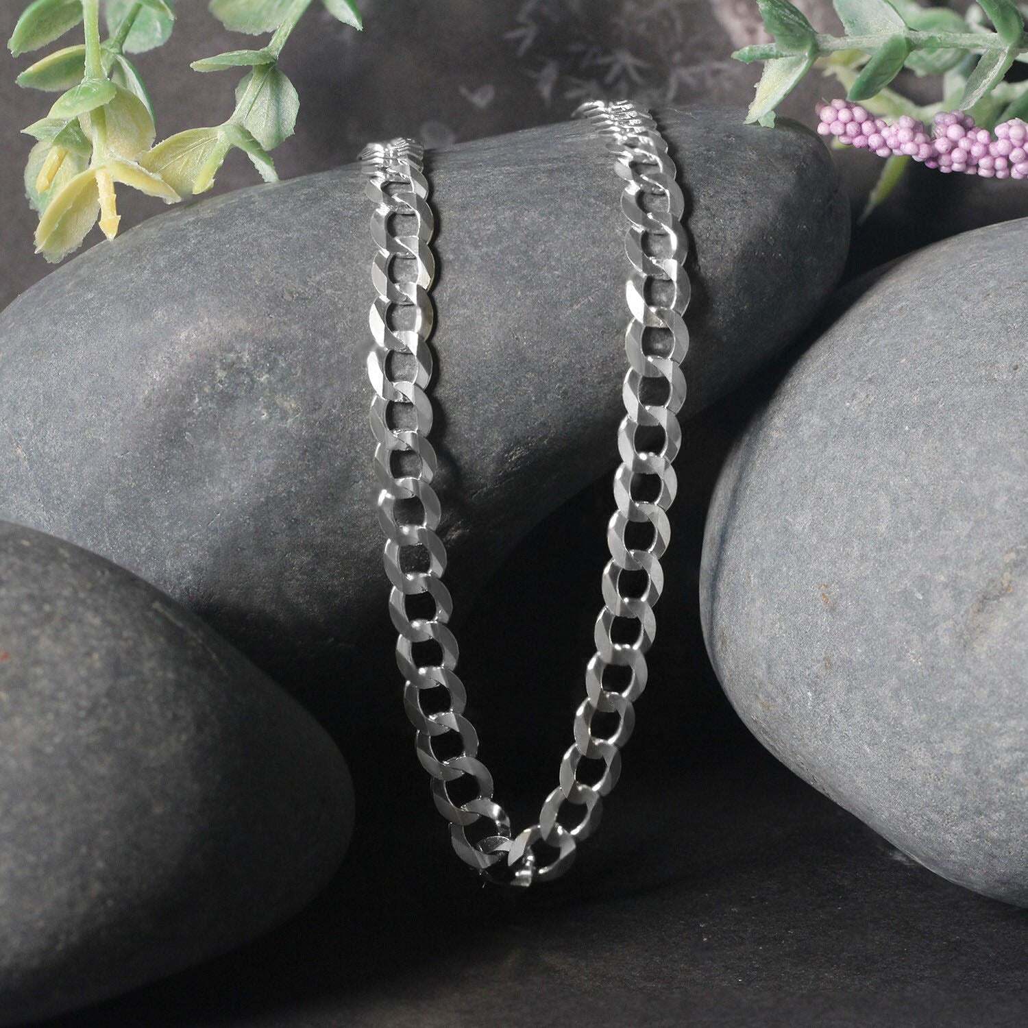 This solid curb chain comes in 14k white gold and has a width of 5.70 millimeters.