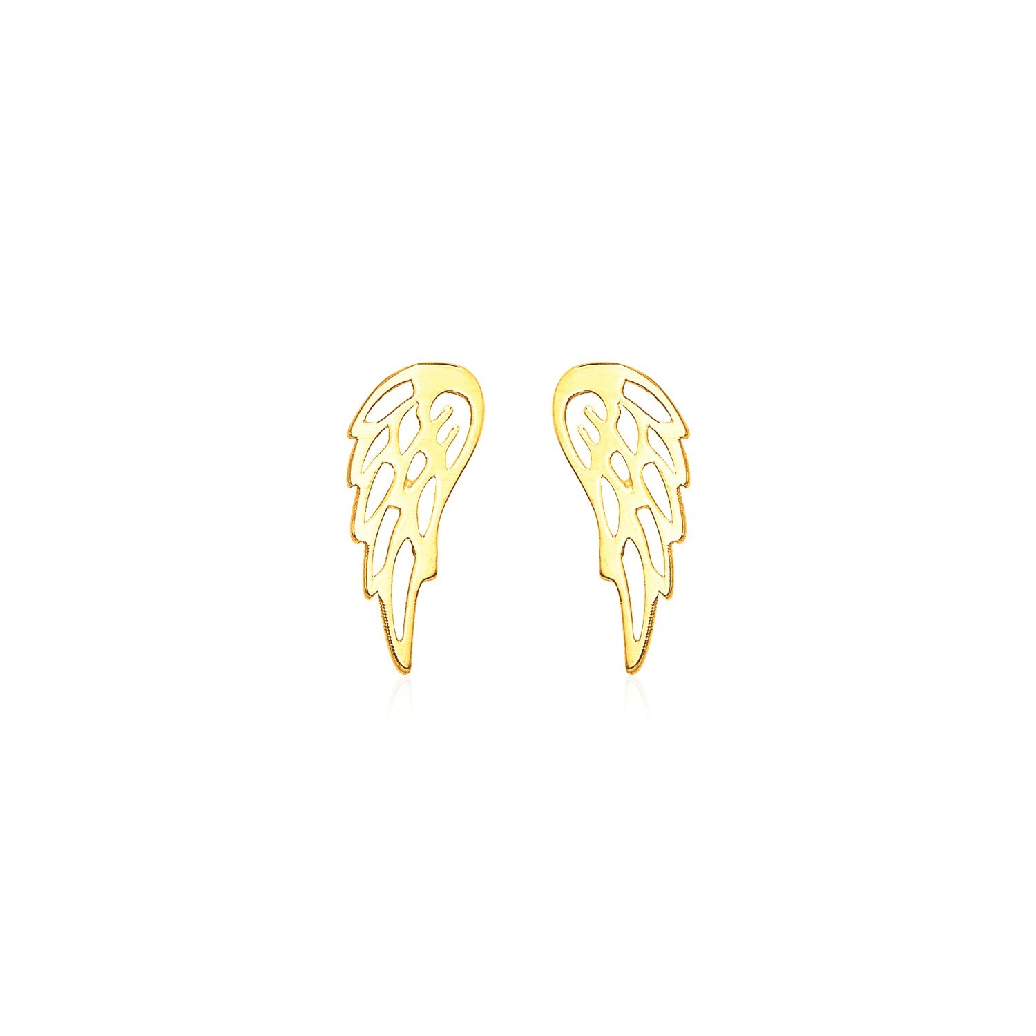 Let your spirit take flight when you wear these charming 14k yellow gold post earrings with delicate wings. Post earrings are 10.5mm long and are held in place by pushback clasps.