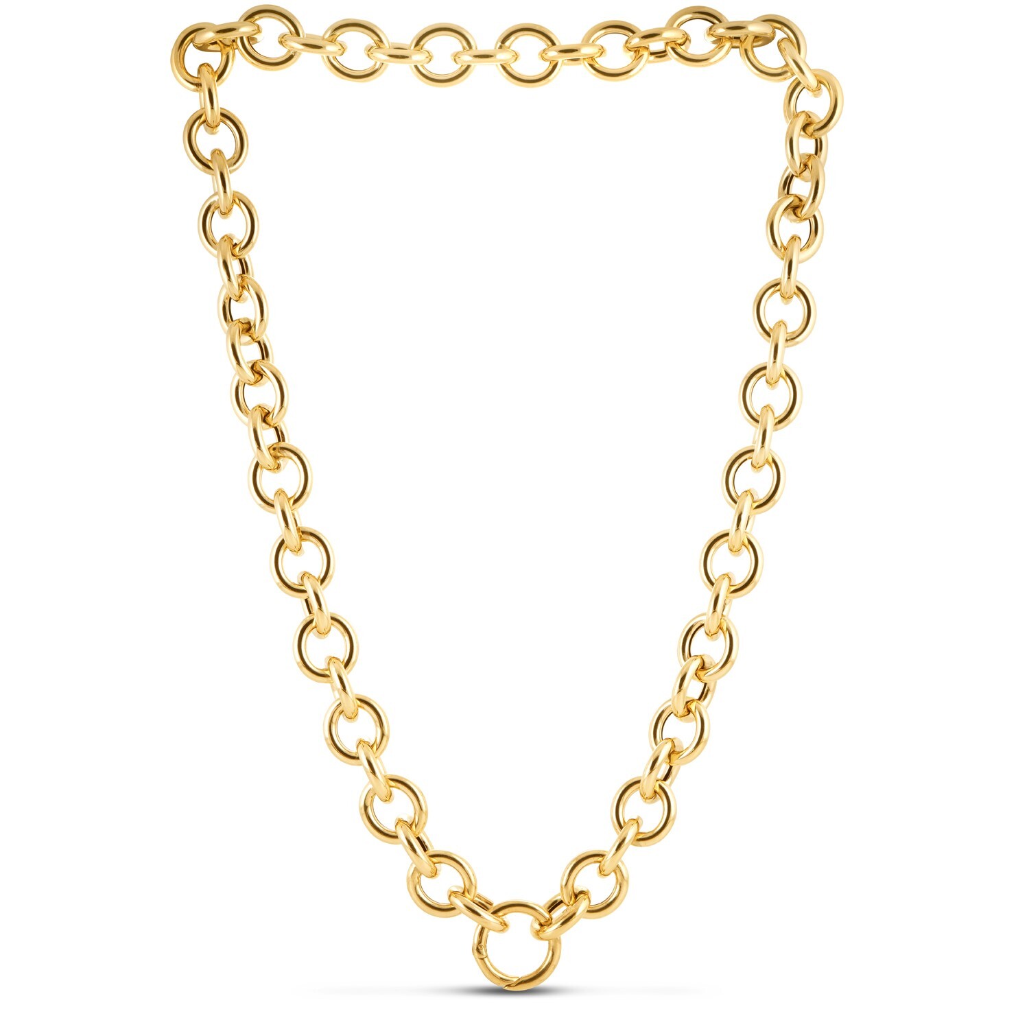 The Round Link chain is a unique addition to complete your look & express your style. Great for layering or wearing independently. Crafted in 14k yellow gold with a high polish finish & push clasp. Measuring 18 inches in length.