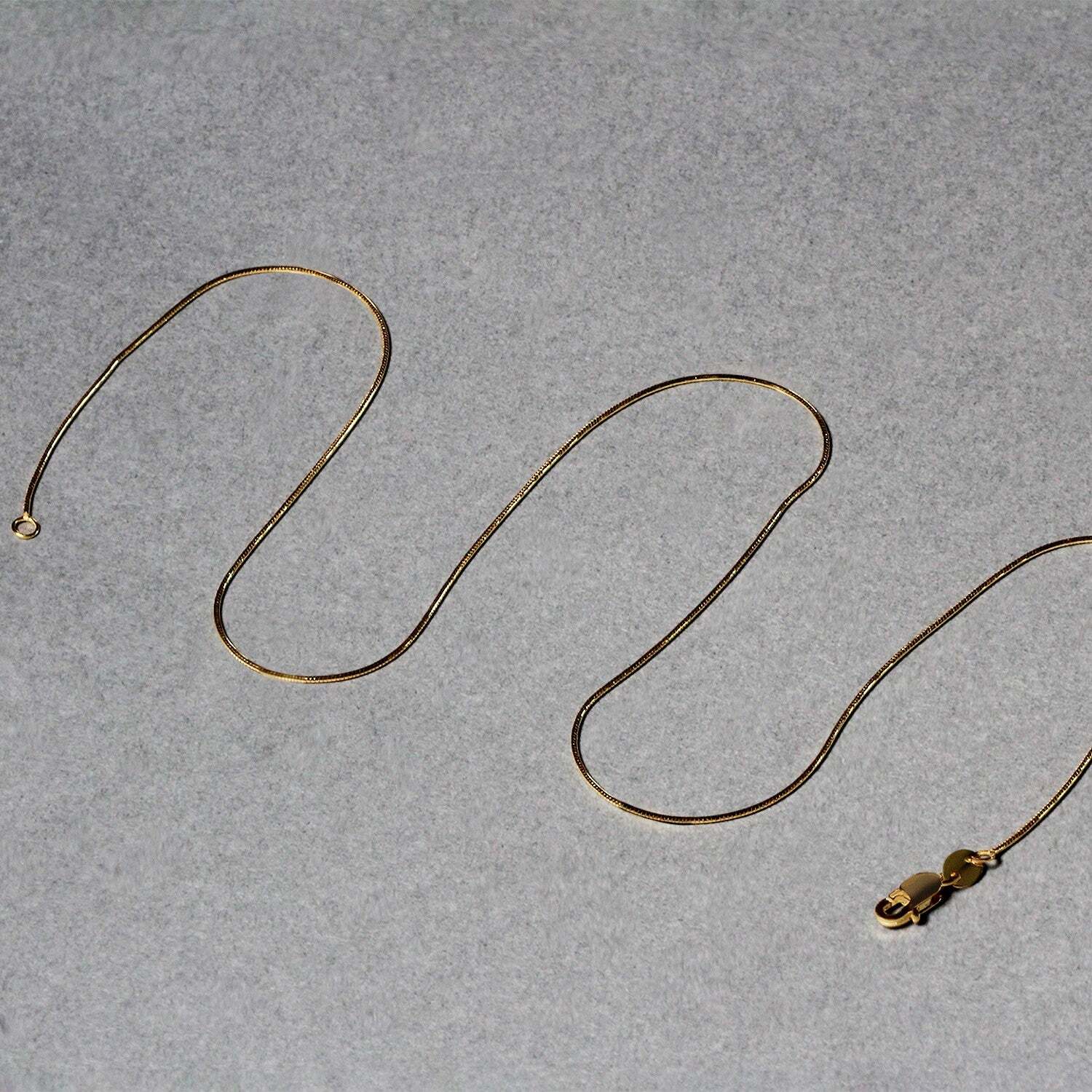 This round snake chain comes in 14k yellow gold and has a width of 0.70 millimeters.