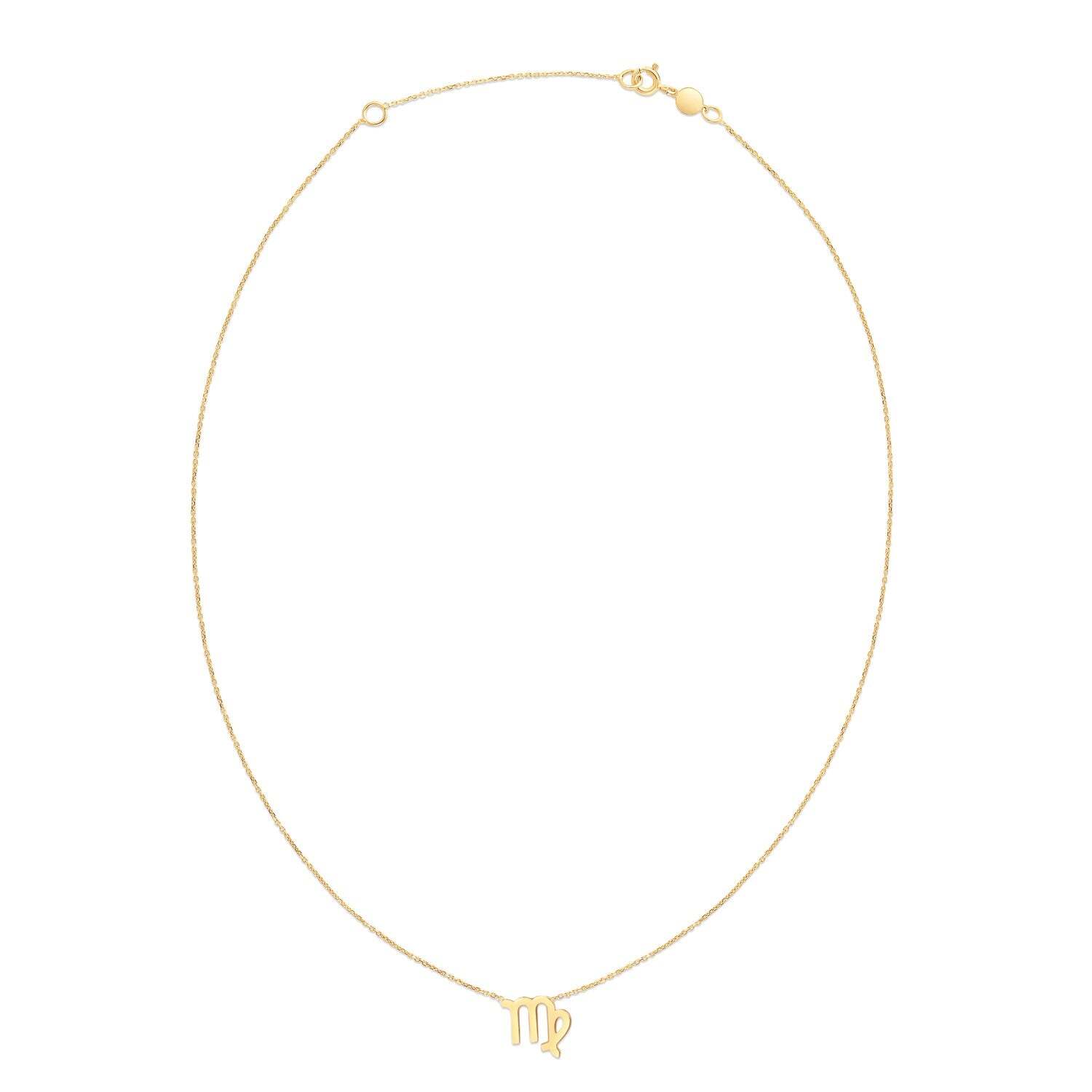 This Virgo necklace is beautifully crafted in 14k yellow gold with a high polish finish & secures with a spring ring clasp. This beautiful piece is hand crafted & a perfect piece for that special virgo in your life. Measuring 18 inches in length. Don’t forget the matching earrings!