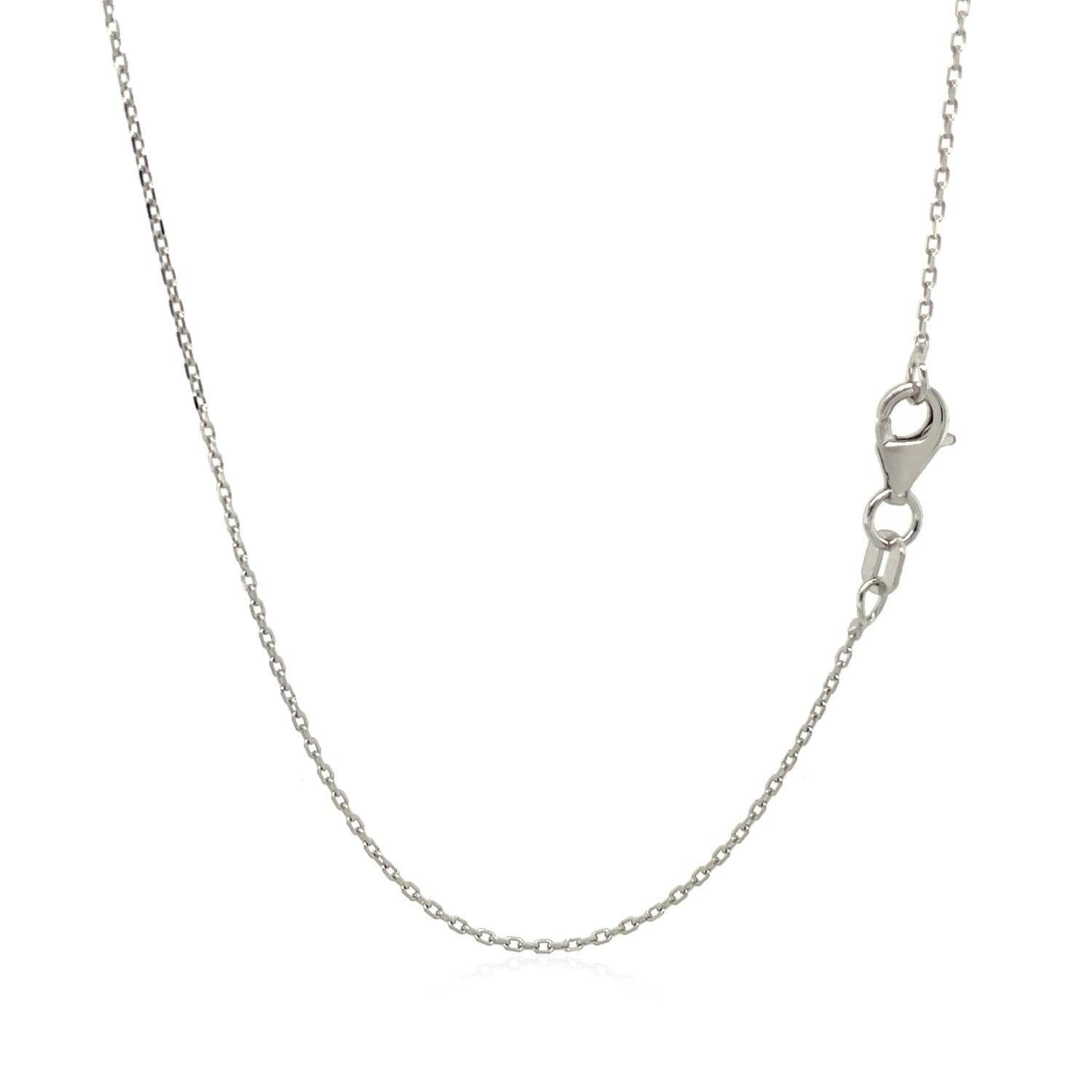 This diamond cut cable link chain comes in 18k white gold and has a width of 0.80 millimeters.