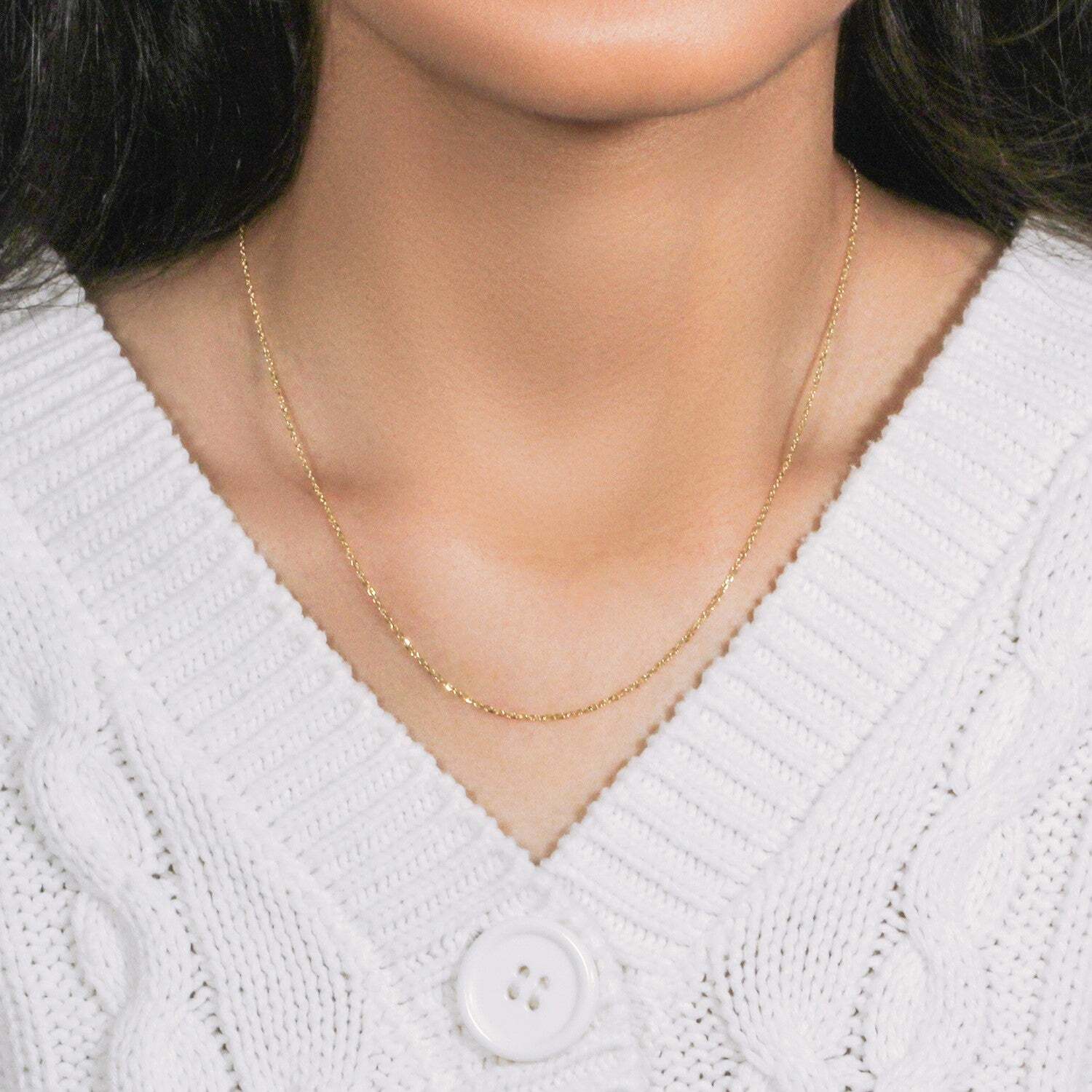 This cable chain comes in 18k yellow gold and has a width of 1.10 millimeters.