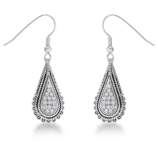 .45 Ct Tear Drop Rhodium Earrings with CZ