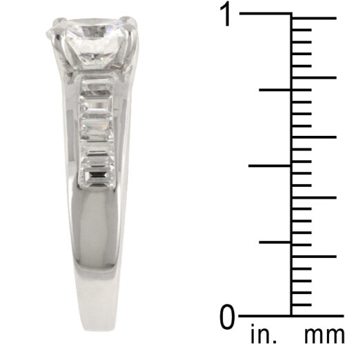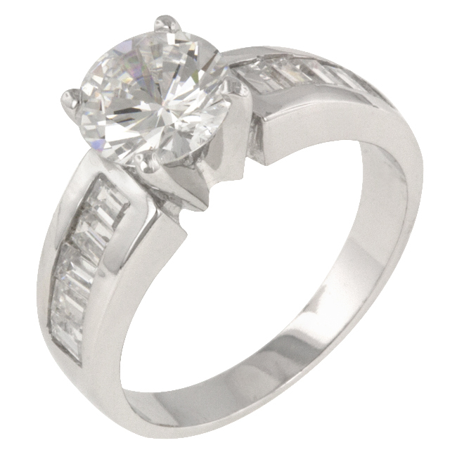 Parched on this ring’s glitzy shoulders is a fabulous two carat clear cubic zirconia. Genuine Rhodium Plating is achieved using an electroplating process that coats the item with heavy layers of rhodium a close cousin to platinum which gives our jewelry a platinum luster.