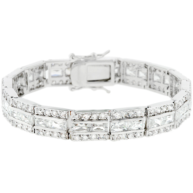 Fashioned in luminescent silver tone and three rows of assorted shimmer our Balboa Cubic Zirconia Bracelet lends sassy tones to classic refinement. Our genuine rhodium finish is achieved using an electroplating process that coats the item with heavy layers of rhodium a close cousin to platinum which gives our jewelry a platinum luster.