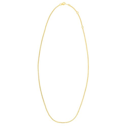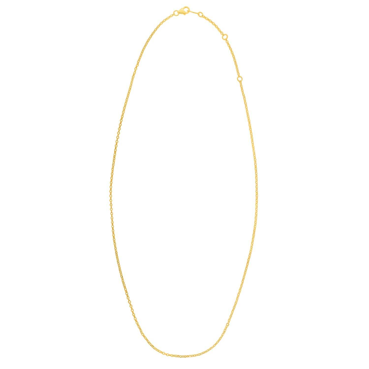 Double extendable cable chain crafted in 14k yellow gold measuring 1.40 millimeters in width. Extendable 16 to 18 inches in length and secured with a lobster clasp.