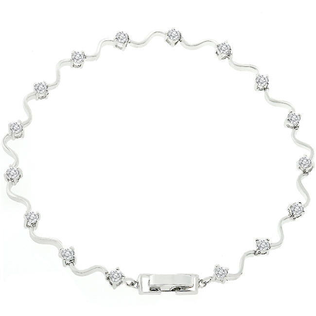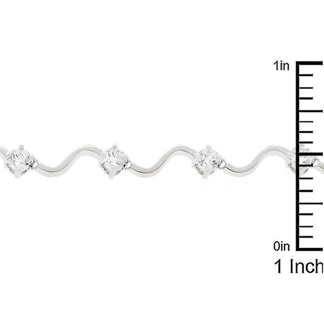Smooth silver tone radiant clear cubic zirconia and flowing design Elegant Eternity Bracelet is a charming bracelet with wonderful design and stonework. Genuine Rhodium Plating is achieved using an electroplating process that coats the item with heavy layers of rhodium a close cousin to platinum which gives our jewelry a platinum luster.