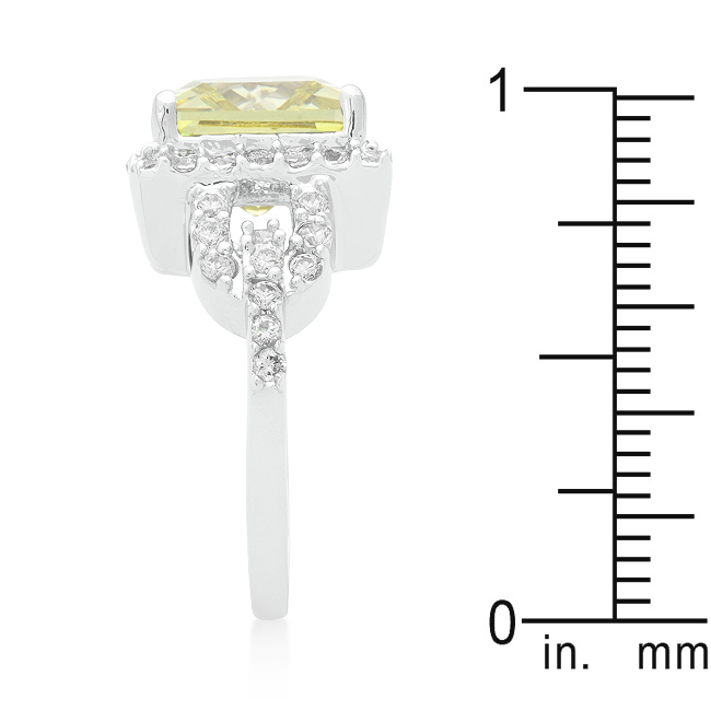Crafted from rhodium and embellished with fine cut cubic zirconia this halo style ring features peridot and white cubic zirconia that will sparkle on your finger anywhere. Our genuine rhodium finish is achieved using an electroplating process that coats the item with heavy layers of rhodium a close cousin to platinum which gives our jewelry a platinum luster.
