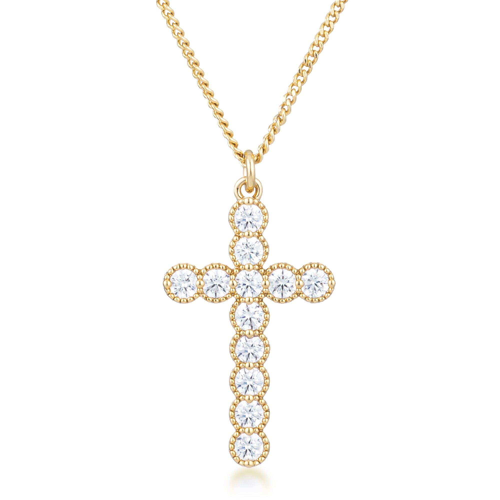 Micro Beaded 18k Gold Plated Clear CZ Cross Pendant