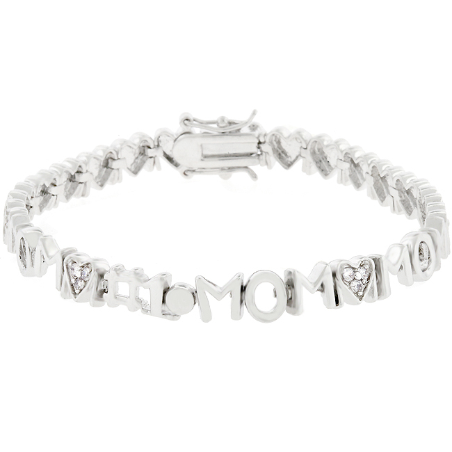 Genuine rhodium plating and pave cubic zirconia adorn this delicate Mom’s Day charm bracelet– a sentimental piece for your #1 fan. Our genuine rhodium finish is achieved using an electroplating process that coats the item with heavy layers of rhodium a close cousin to platinum which gives our jewelry a platinum luster.