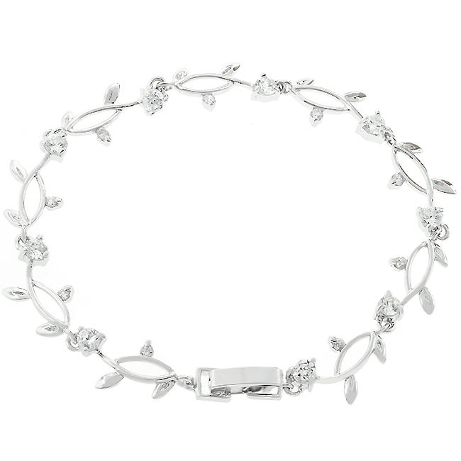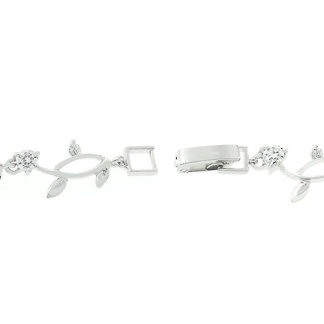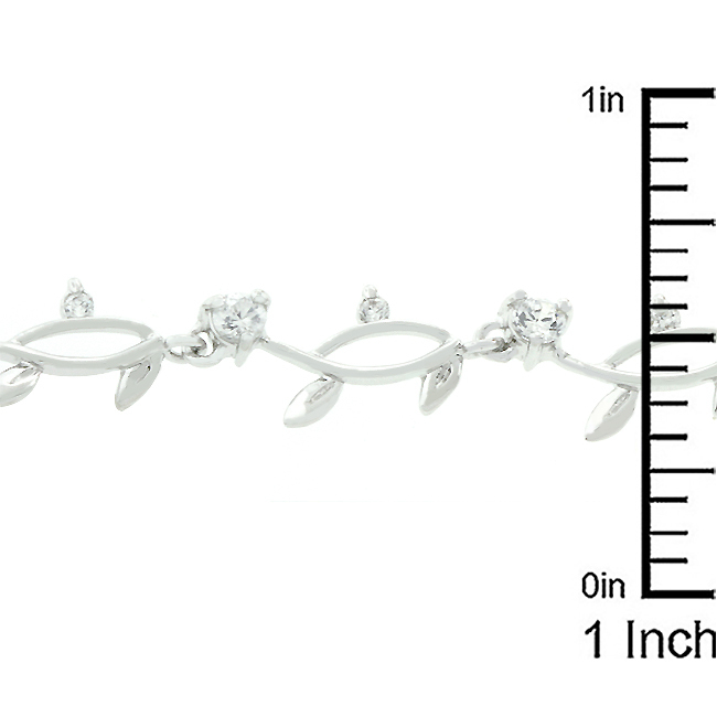 This delicate vine bracelet is plated with genuine rhodium and adorned with clear cubic zirconia. Add a feminine timeless look to your favorite evening look or make an effortless bridal statement for your big day!
