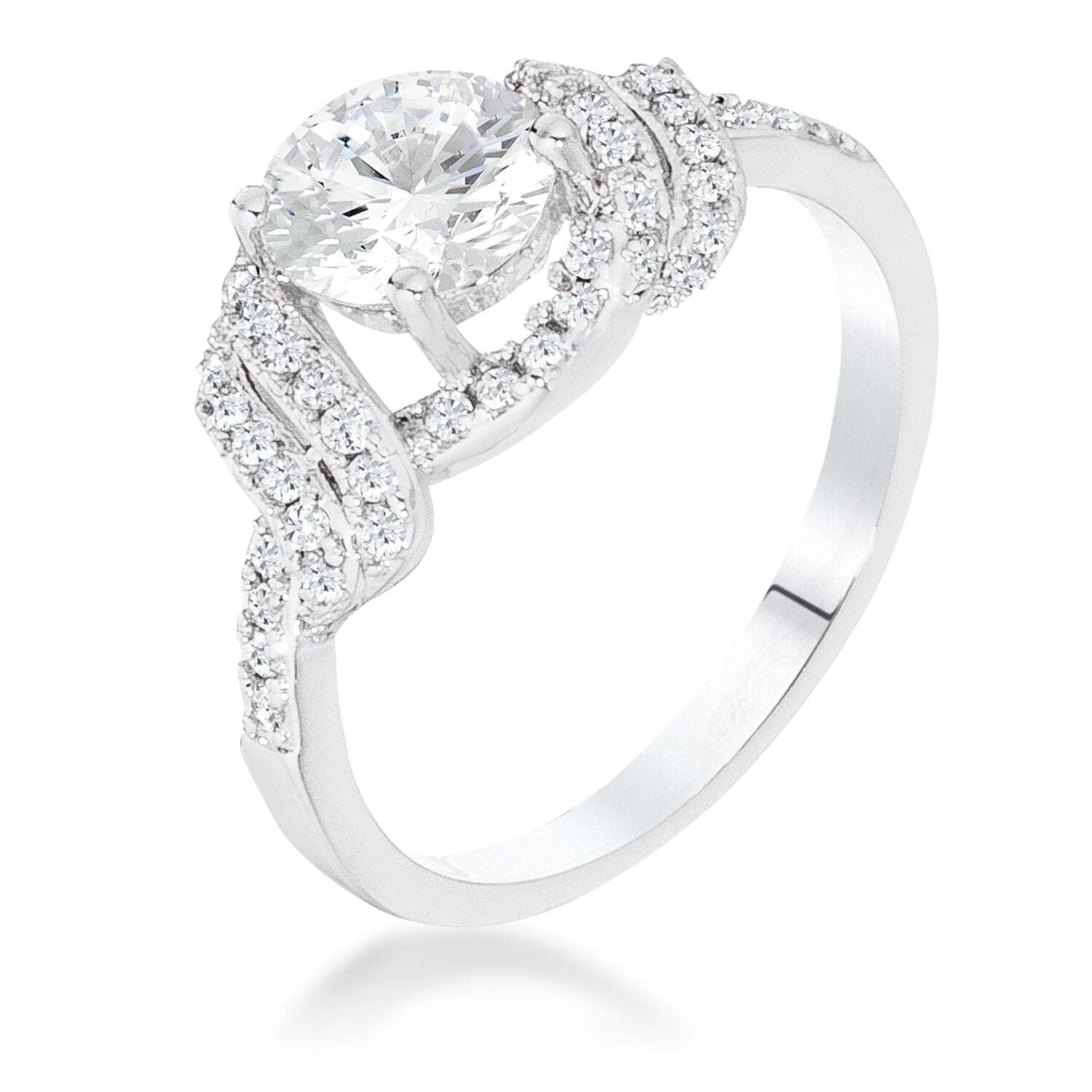 A parallel twist of micro pave clear CZ stones twisted around a center 6.5mm center round cut CZ to create a mutedly rich design perfect for a black tie occasion. Accessorize the cold season with this desaturated hematite finish to add a sense of edge and mystique.
