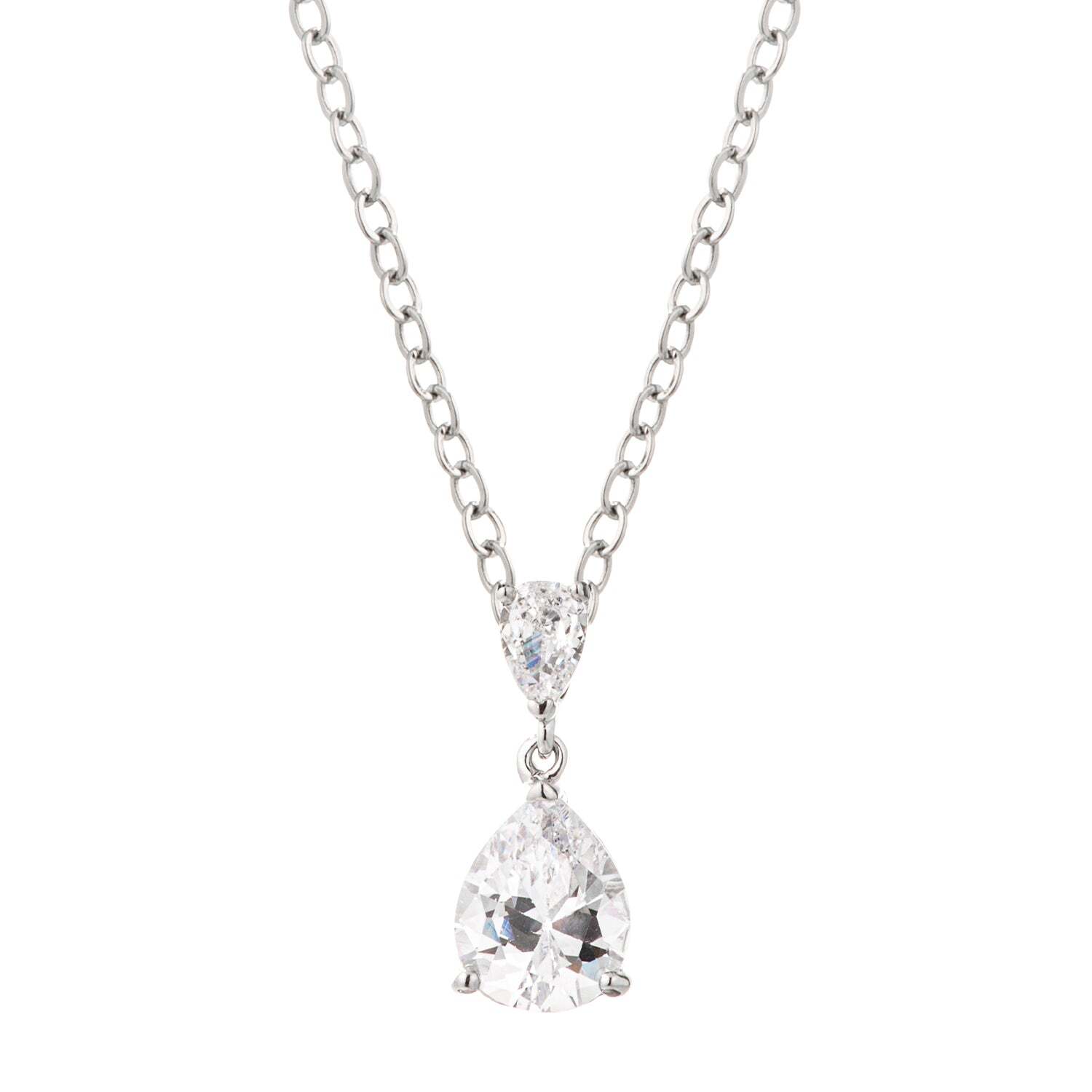 Be the first to review “Rhodium Plated Double Pear CZ Drop Pendant Necklace” Cancel reply