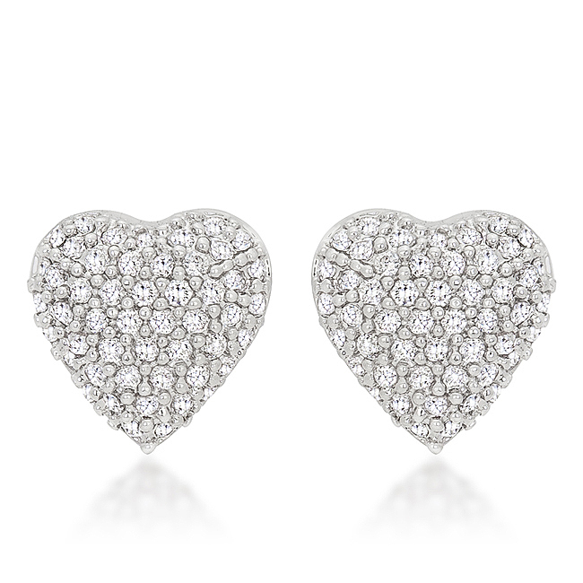 This beautiful set of pave heart earrings will glisten to perfection on your ears. Our genuine rhodium finish is achieved using an electroplating process that coats the item with heavy layers of rhodium a close cousin to platinum which gives our jewelry a platinum luster.