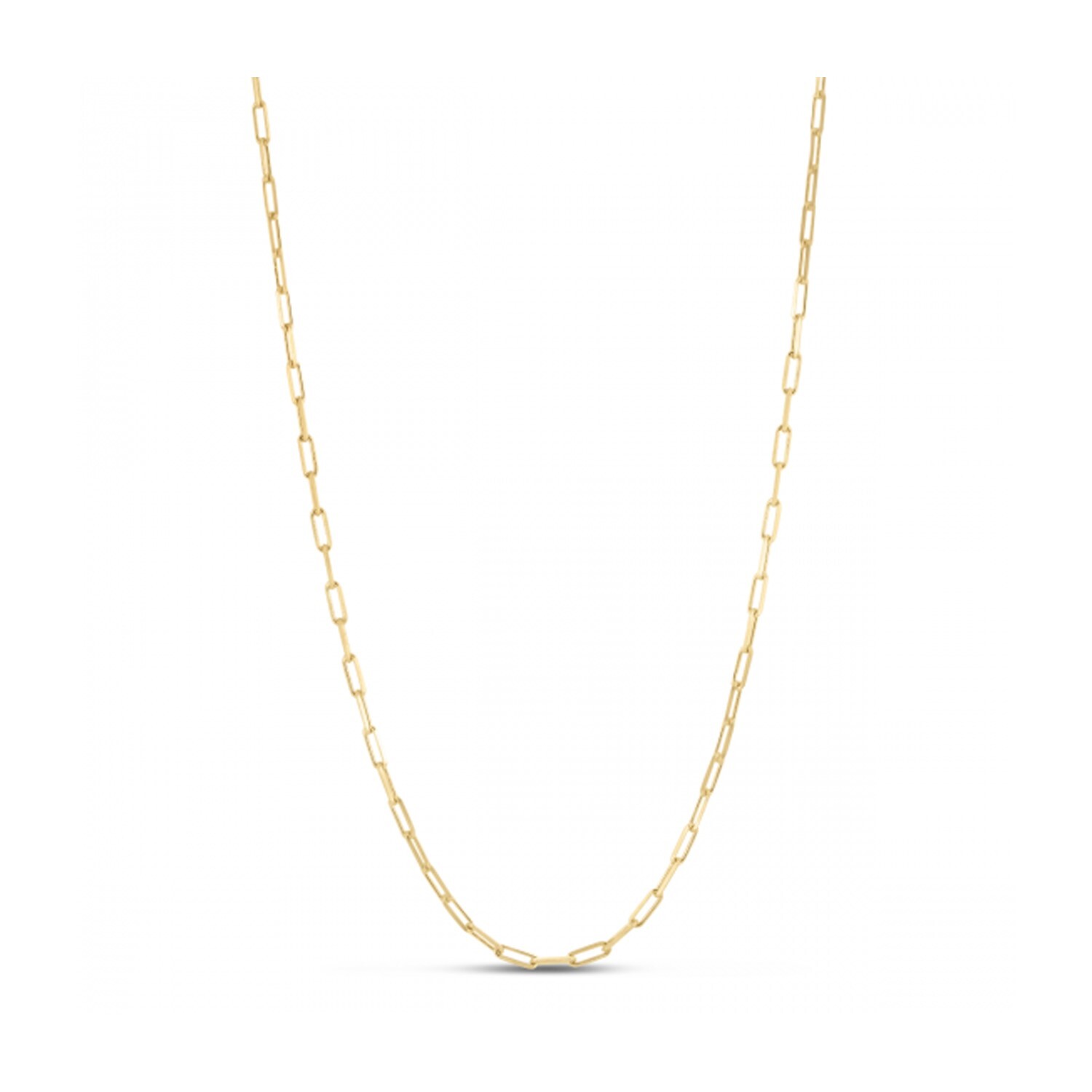 Brilliantly shiny sterling silver links come together to form this contemporary paperclip chain measuring 2.5 mm in width and closes with a lobster clasp. Available in lengths 16, 18, 20 and 24 inches.