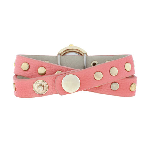 Pink Round Studded Wrap Watch