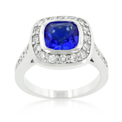 Shonda 1.8ct Aqua CZ Rhodium Cushion Classic Statement Ring