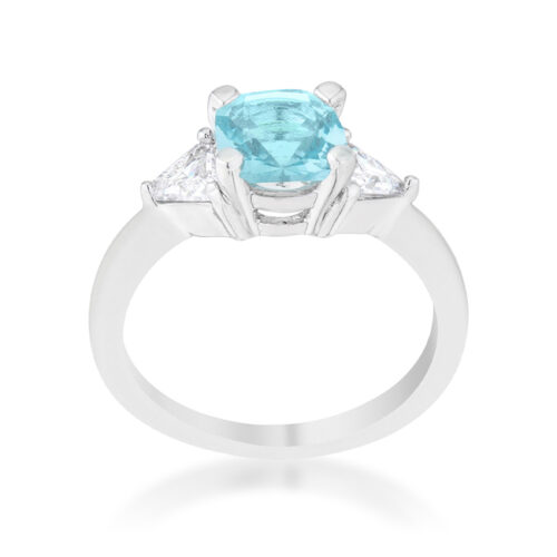 Shonda 1.8ct Aqua CZ Rhodium Cushion Classic Statement Ring