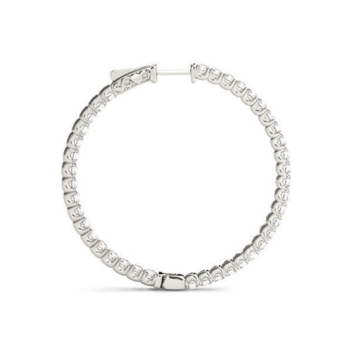 14k White Gold Diamond Hoop Earrings with Shared Prong Setting (2 cttw)
