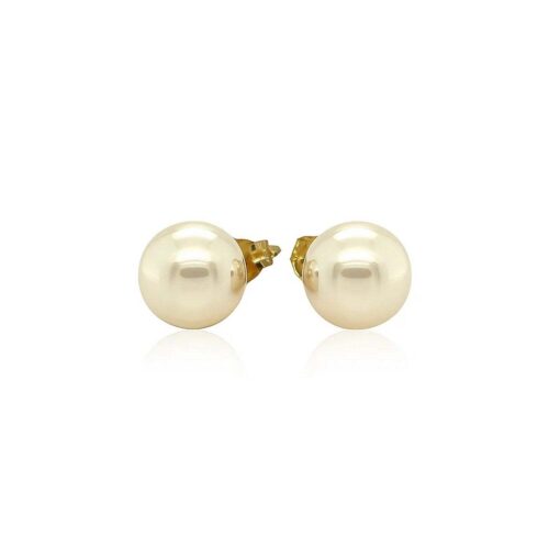 14k Yellow Gold Freshwater Cultured White Pearl Stud Earrings (7mm)